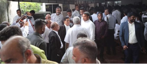 හිටපු ජනාධිපති මෛත්රීපාල සිරිසේන, ශ්රී ලංකා පොදු ජන පෙරමුණේ ජාතික සංවිධායක පාර්ලිමේන්තු මන්ත්රී නාමල් රාජපක්ෂ මහත්වරුන්ද පක්ෂ විපක්ෂ දේශපාලකයන්ද අධිකරණ පරිශ්රයට රැස්ව සිටින අයුරු දැකගත හැකි විය.