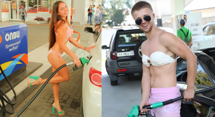 මේ නිසා, ඉන්ධන නොමිලේ ලබාගැනීමට සුදුසුකම් ලැබීම සඳහා බොහෝ පිරිමින් ද බිකිනි ඇඳගෙන සිටියහ.
