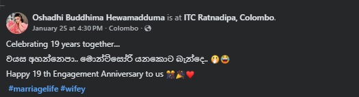 මේ කියන්න යන්නේ ඒත් ඒ ගැන නම් නෙවෙයි, ඕෂධී වගේම ඇයගේ සැමියාගේ 19 වැනි විවාහ සංවත්සරය පසුගිය දවසක යෙදිලා තිබුණා.