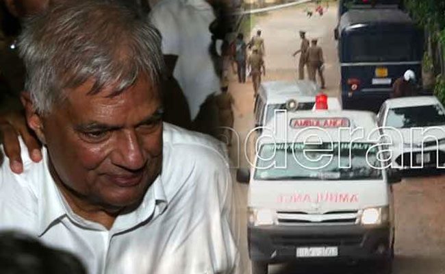 අපරාධ පරීක්ෂණ දෙපාර්තමේන්තුව විසින් අත්අඩංගුවට ගැනීමෙන් අනතුරුව එළඹෙන 26 වන දින දක්වා රක්ෂිත බන්ධනාගාරගත කෙරුණු රනිල් වික්රමසිංහ මහතා ඊයේ (22) රාත්රියේ බන්ධනාගාර රෝහල වෙත ඇතුළත් කර තිබුණි.