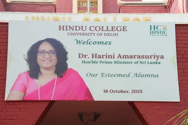 ඉන්දීය නිල සංචාරයක නිරත වූ අග්රාමාත්ය, ආචාර්ය හරිනි අමරසූරිය මෙනවිය, තමා සමාජ විද්යාව පිළිබඳ උපාධිය හැදෑරූ නව දිල්ලි හින්දු කොලෙජ් විශ්වවිද්යාලය වෙත නිරීක්ෂණ චාරිකාවකට එක්වූවාය. එම අවස්ථාවේදී සරසවි කාර්ය මණ්ඩලය, පීඨ සාමාජිකයින් මෙන්ම සිසු සිසුවියන් විසින් අග්රාමාත්යවරිය ඉතා උණුසුම් අයුරින් පිළිගනු ලැබිණි.