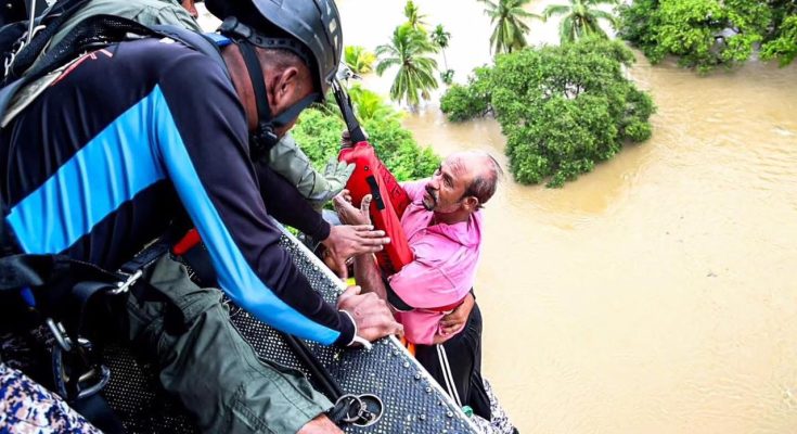 සත්තු දෙන්නෙක් ගහගෙන ගියා අනිත් එකාව ලෙහන්නම බෑ ඒකා මැරෙනවා කියලා හිතාගෙන ලණුවක් අරන් මං නැග්ගා තැඹිලි ගහට.. මට දැන් බලන් ඉන්න බෑ සතාව වතුරේ කැරකෙනවා ඊට පස්සේ උගේ බොලොක්කේ කැඩුනා එයත් පණ පිටින් ගියා මැරුනේ නෑ..දැන් සත්තු නෑ මං විතරයි හිර වුණේ දවල් වෙද්දී බෝට්ටු ආවා එත් ලගට එන්න බෑ වතුර පාර සැර වැඩී එයාලා එන්නම් කියලා ගියා ආයේ ආවේ නෑ මං එයි කියලා හිත හදන් හිටියා රෑ වෙද්දී හොදටම වහිනවා ඉන්නම බෑ කන්න දෙයකුත් නෑ තැඹිලි කඩාගෙන බිව්වා.. සීතලට දත් ටික ගැහෙන නිසා කුරුම් බැට්ටි හප හපා හිටියා හිත හදන් හිටියා උදේ ආවේ නැත්නම් වතුරට පනිනවා කියලා…එහෙම ඉද්දි තමා චොපර් එකක් ආවේ මටත් බෙල්ට් එක දාලා මාව උඩට ගත්තා…”