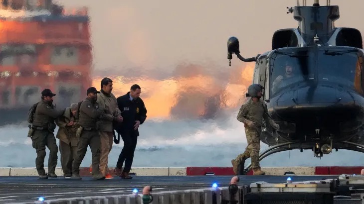 මදුරෝ සහ බිරිඳ හෙලිකොප්ටර් මගින් අමෙරිකානු යුද නෞකාවක් වෙත රැගෙනවිත් පසුව ගුවන් මගින් නිව්යෝර්ක් වෙත රැගෙන එනු ලැබීය.