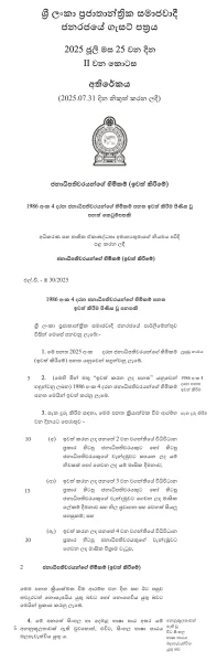 අදාළ ගැසට්ටුව පහත පරිදිය.