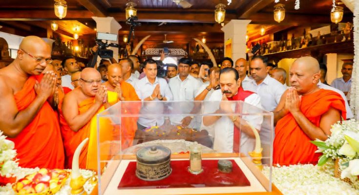හිටපු ජනාධිපති මහින්ද රාජපක්ෂ මහතා හුණුපිටිය ගංගාරාම විහාරස්ථානයට පැමිණ අද(10) සර්වඥ ධාතූන් වහන්සේ වැඳපුදා ගත්තේ ය.