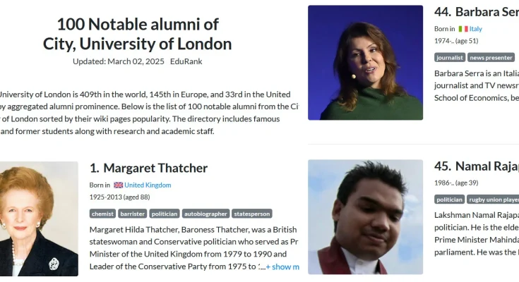 එම ලැයිස්තුවේ පළමු ස්ථානය පසු වන්නේ එංගලන්තයේ ප‍්‍රකට අග්‍රාමාත්‍යවරියක වන මාග්‍රට් තැචර් මහත්මියයි.