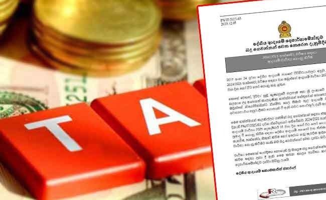 එම දෙපාර්තමේන්තුව පසුගියදා දන්වා සිටියේ, 2017 අංක 24 දරන දේශීය ආදායම් පනතේ විධිවිධානවලට අනුව සියලුම තැනැත්තන් 2024/2025 තක්සේරු වර්ෂය සඳහා වන ඔවුන්ගේ ආදායම් වාර්තා 2025 නොවැම්බර් 30 වනදා හෝ ඊට පෙර ගොනු කළ යුතු බවය.