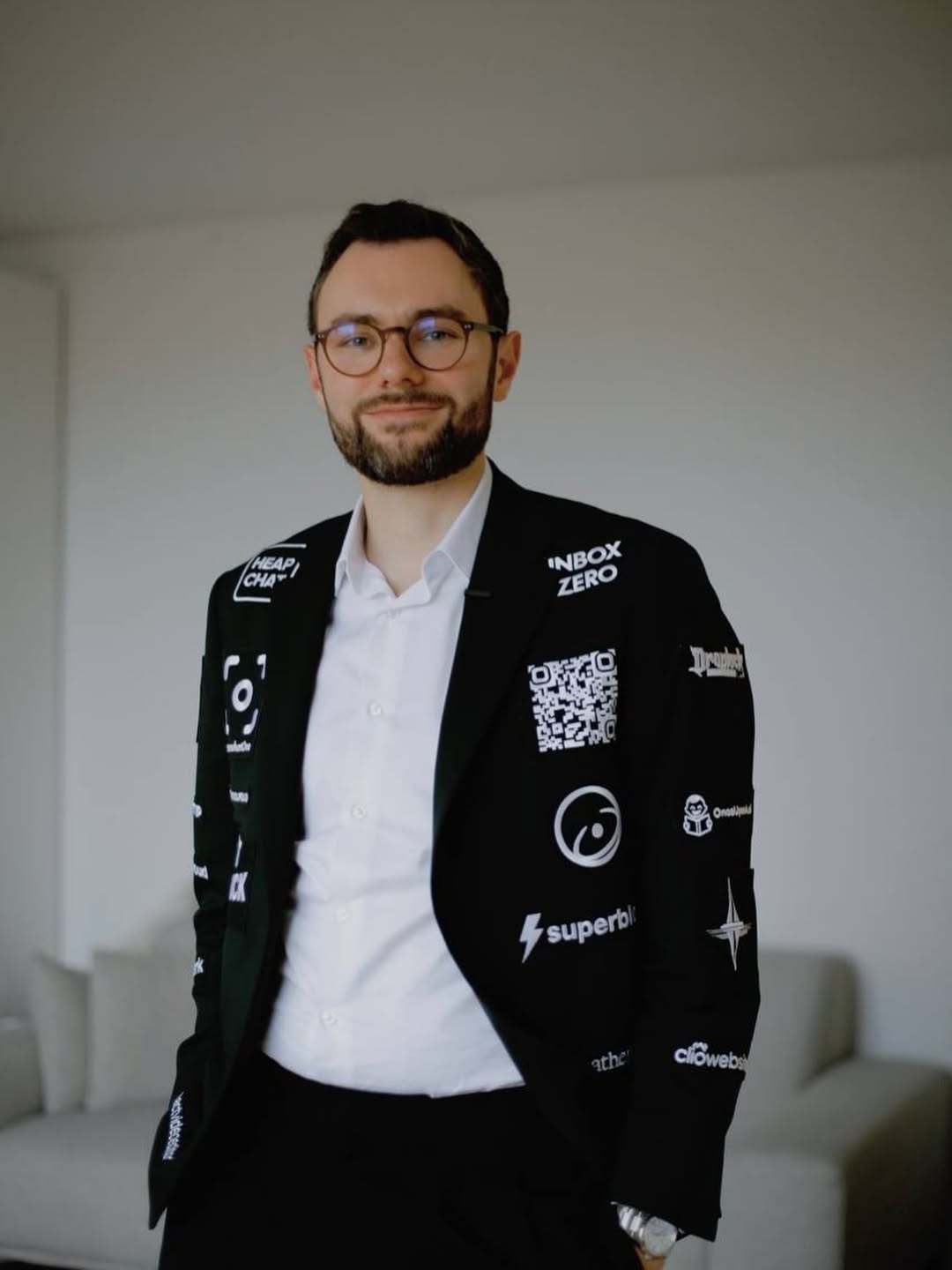 ඩගෝබට් රෙනොෆ් ඔහුගේ විශාල දිනයේ වැඩි කාලයක් අරමුදල් සපයා ගත්තේ ඔහුගේ ටක්සෙඩෝවේ දැන්වීම් අවකාශය විකිණීමෙන්, ඔහුට අනුග්රහය දැක්වූ AI ආරම්භක ව්යාපාර 26 ක ලාංඡන මැසීමෙන් – ඩොලර් 7,500 ක් පමණ උපයා ගත්තා.