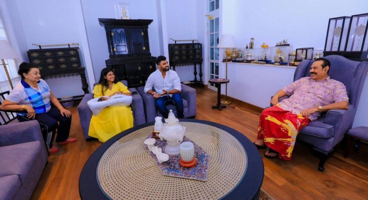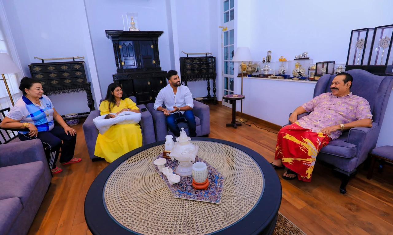 “ක්රිකට් ක්රීඩක තිසර පෙරේරා සහ ඔහුගේ බිරිඳ නිෂී හතරසිංහ දෙපළ පසුගිය දින (26) විජේරාම නිල නිවසට පැමිණ මා ද බිරිඳ ශිරන්ති ද සමඟ සුහද පිළිසඳරක යෙදුණි. බිලිඳු දියණියගේ පැමිණීම නිසා එම අවස්ථාව තවත් අලංකාර වූ බව කිව යුතුය. දියණියක් යනු පියෙකුට සම්පතකි. තිසාරා අවියානා පුන්චි දියණිය සමඟ මම ද බිරිඳ ශිරන්ති ද සෙනෙහසින් කෙටි කාලයක් ගත කළෙමු.