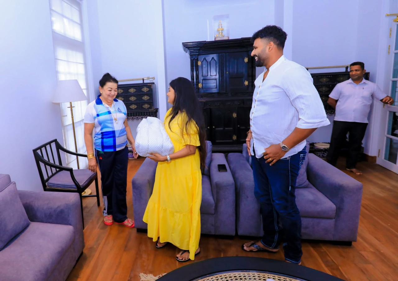 “ක්රිකට් ක්රීඩක තිසර පෙරේරා සහ ඔහුගේ බිරිඳ නිෂී හතරසිංහ දෙපළ පසුගිය දින (26) විජේරාම නිල නිවසට පැමිණ මා ද බිරිඳ ශිරන්ති ද සමඟ සුහද පිළිසඳරක යෙදුණි. බිලිඳු දියණියගේ පැමිණීම නිසා එම අවස්ථාව තවත් අලංකාර වූ බව කිව යුතුය. දියණියක් යනු පියෙකුට සම්පතකි. තිසාරා අවියානා පුන්චි දියණිය සමඟ මම ද බිරිඳ ශිරන්ති ද සෙනෙහසින් කෙටි කාලයක් ගත කළෙමු.